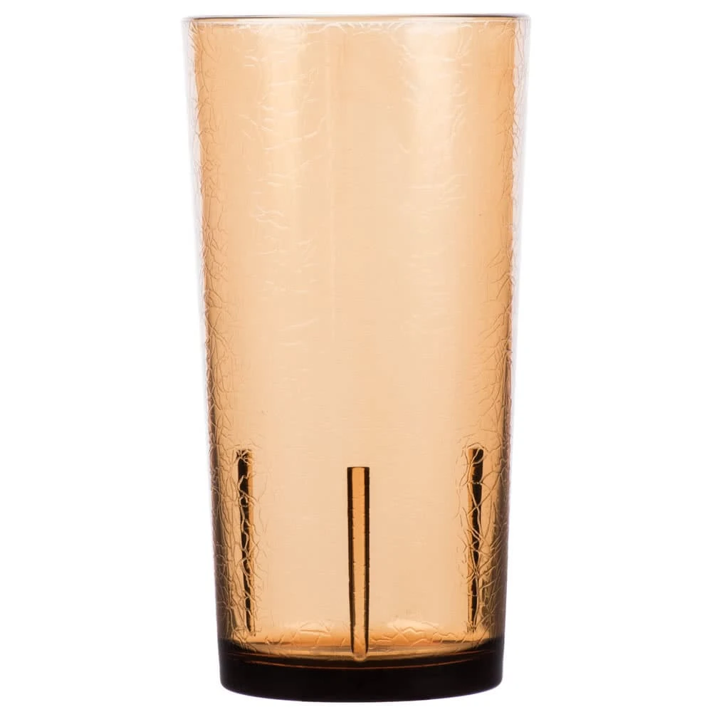 This Del Mar light amber 24 ounce tumbler is made of durable, break‐resistant SAN plastic and has a thick base and a rolled edge rim for extra stability. Its crackled pattern resembles real glass, but this tumbler is tough enough to use both indoors and outdoors, particularly in places where an actual glass might get broken.